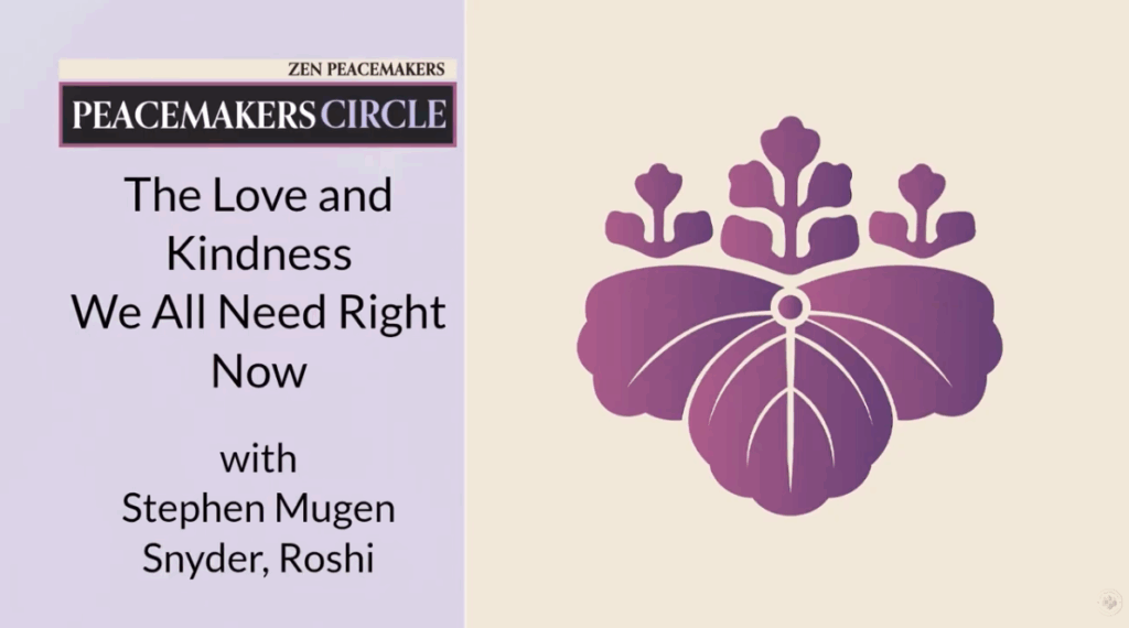 In this practice presentation, Mugen Roshi will introduce how the ancient Buddhist heart practices (the brahma viharas) work well with the three tenets of the Peacemakers to give one greater clarity, acceptance, and peace.